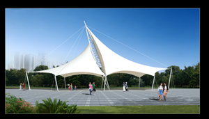 膜結(jié)構(gòu)作為一種新型建筑形式,所用的材料和技術(shù)均不同于傳統(tǒng)結(jié)構(gòu)。膜結(jié)構(gòu)以造型學(xué)、色彩學(xué)為依托,可結(jié)合自然條件及民族風(fēng)情,根據(jù)建筑師的創(chuàng)意建造出傳統(tǒng)建筑難以實(shí)現(xiàn)的曲線及造型。膜結(jié)構(gòu)的特點(diǎn)要求在方案設(shè)計(jì)時(shí)考慮結(jié)構(gòu)的可行性與美觀性相結(jié)合,根據(jù)現(xiàn)場(chǎng)條件與客戶需求,設(shè)計(jì)出美觀實(shí)用的膜結(jié)構(gòu)造型。