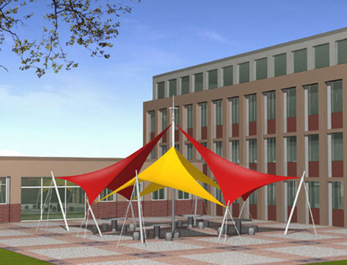 由于張拉膜景觀的自身特性,它可以滿足許多不同的建筑功能要求。優(yōu)秀的膜結(jié)構(gòu)設(shè)計使它與自然環(huán)境、歷史及現(xiàn)代的城市景觀相結(jié)合,成為周圍環(huán)境的補(bǔ)充和焦點(diǎn)。張拉膜景觀屋面的一個重要作用就是可以抵御各種自然天氣所帶來的傷害,利用建筑本身的優(yōu)勢來盡可能的減少能量的消耗,并且還能保持建筑物內(nèi)部的舒適性。張拉膜與其他的結(jié)構(gòu)相比,突出的優(yōu)勢是對環(huán)境的可移動性,因為膜材具有輕柔的特點(diǎn),在運(yùn)輸?shù)臅r候十分方便,而且搭建的方法很簡單,可以迅速完成搭建,在閑置時,所占的空間也很小,所以張拉膜景觀可以在不同的地方,多次的進(jìn)行拆除和搭建,特別是在發(fā)生緊急情況的時候,在短時間內(nèi)就需要為人們提供庇護(hù)所的時候,張拉膜景觀的可移動性和靈活性就會凸顯的更加明顯。它們對現(xiàn)代城市的發(fā)展和建筑功能的轉(zhuǎn)變具有重要的意義。